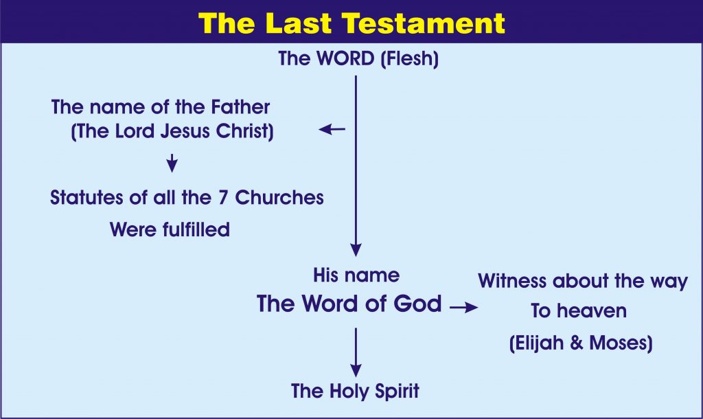 கடைசி ஏற்பாட்டின் காலத்தில் குமாரனாகிய வார்த்தை மகிமைப்பட வேண்டும். வார்த்தை உபத்திரவப்படுத்தப்பட்ட பின்னர் மகிமைப்படும். இந்த உபத்திரவத்திற்கு முன்னதாக மணவாட்டி எடுத்துக்கொள்ளப்படுவாள். அதன்பின்னர் கிருபை இஸ்ரவேலர்களுக்குத் திரும்பும். வார்த்தை மகிமைப்பட்ட பின்னர் இஸ்ரவேலர்கள் "தேவனுடைய நாமம் வார்த்தை" என்னும் நாமத்தில் பரிசுத்த ஆவியினைப் பெற்றுக்கொள்வார்கள். இயேசுகிறிஸ்து என்ற நாமத்தில் அதன்பின்னர் பரிசுத்த ஆவி கட்டளையிடப்படுவதில்லை.