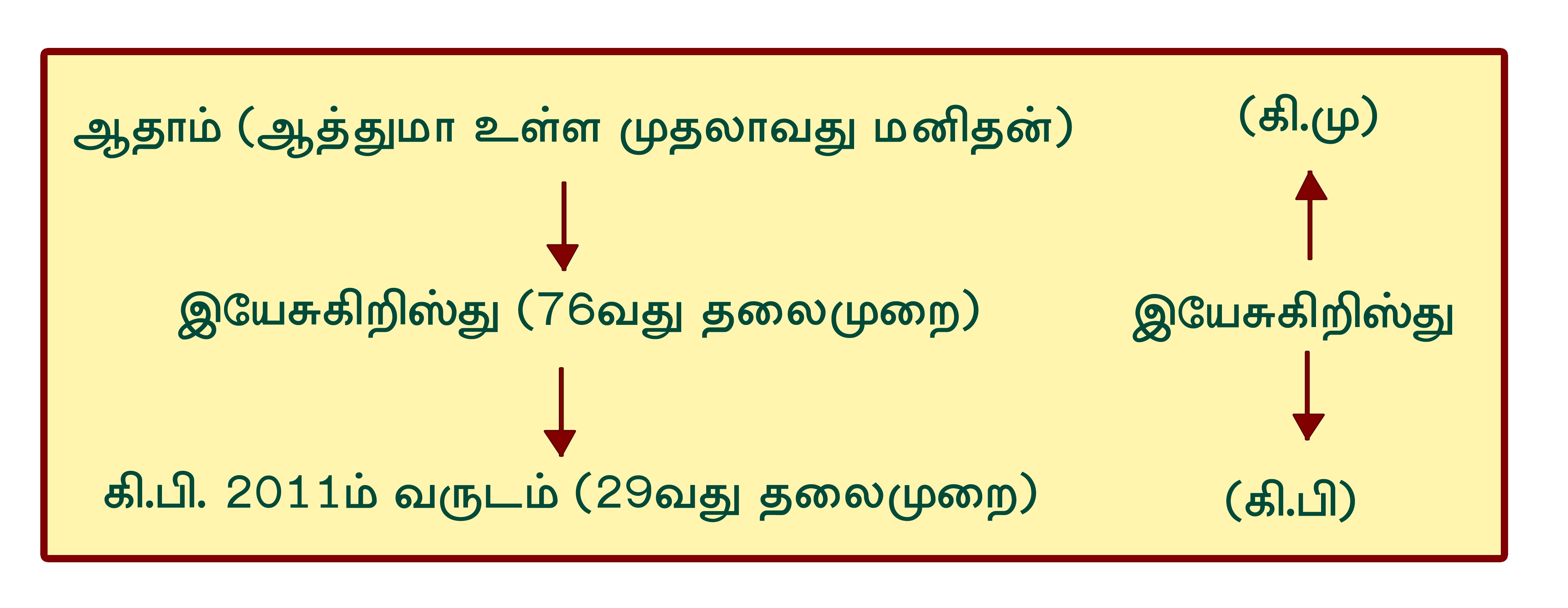 ஆதாம் சிருஷ்டிக்கப்பட்டதிலிருந்து இதுவரையிலும் 105 தலைமுறைகள் ஆகின்றது.