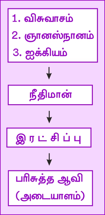 மூன்றாவதாக, அன்றைக்கென்று கர்த்தரிடமிருந்து அனுப்பப்பட்ட தூதர்களால் எழுப்பப்பட்ட சபையோடு ஐக்கியப்படவேண்டும். இவைகளைச் செய்பவன் நீதிமான். நீதிமானுக்குக் கிடைப்பது இரட்சிப்பு. இரட்சிப்பிற்கு அடையாளம் பரிசுத்த ஆவி.
