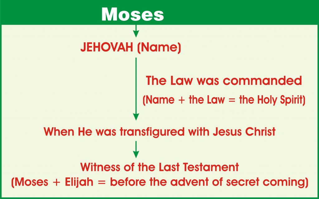 மோசே யேகோவா தேவனைக் குறித்துச் சாட்சி கொடுத்தான். மோசே தன்னிடம் கூறப்பட்டதை இஸ்ரவேலர்களுக்குள் அறிவித்தான். யேகோவாவினுடைய சாட்சியினை விசுவாசித்து, அதற்குரிய கிரியைகளைச் செய்தபோது அவர்கள் ஜீவனுக்குரியவர்கள் ஆனார்கள். யேகோவா என்ற நாமத்தினைக் கர்த்தர் மோசே என்ற தூதன்மூலம் வெளிப்படுத்தினார். தாத்தான், அபிராம் போன்றோர் அதனை ஏற்றுக்கொள்ளவில்லை. யேகோவா தன்னைக் குறித்து, மோசேயினிடம் வெளிப்படுத்தினார்.