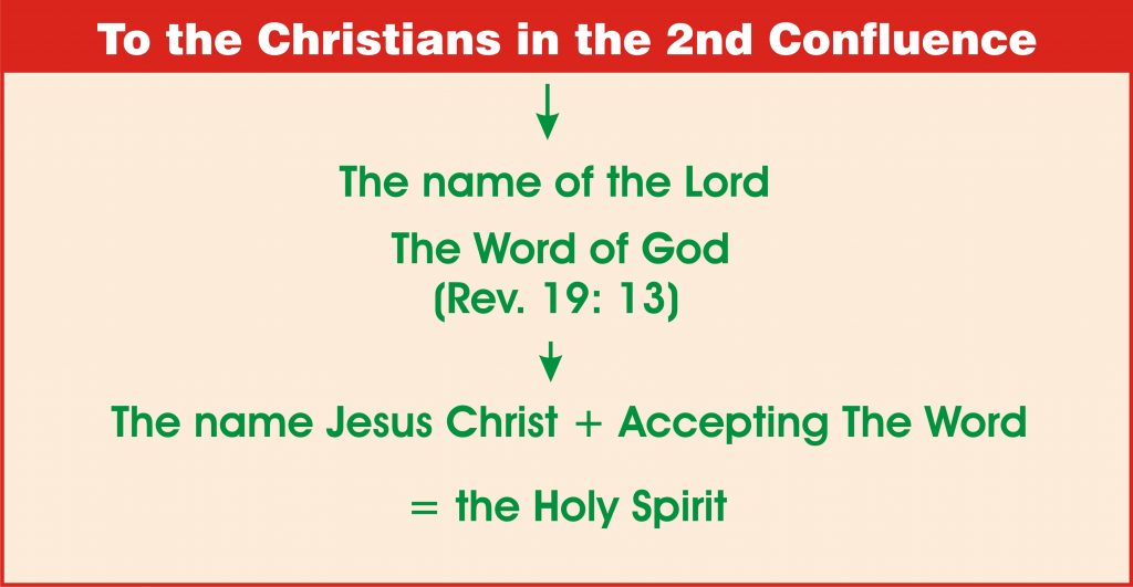 Similarly, in the second confluence, if one puts his faith on the Word, and accepts it, one can receive the Holy Spirit. Now, the Holy Spirit is given in the name of the Lord Jesus Christ. Before the time of confluence, the sign given in the period of the seven Churches is the baptism.