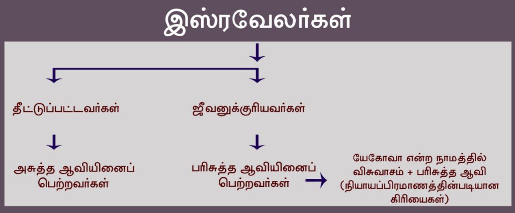 The people, who were the believers of JEHOVAH and followed the Law, received the Holy Spirit. Those people who had not received the Holy Spirit were all unclean people. The unclean soul is condemned for punishment. Among the Israelites, those people who had received the Holy Spirit were the saints. Although the Israelites had the Lord as their God, unclean people were ordained for condemnation, and the people who had received the Holy Spirit, were ordained for eternal life.