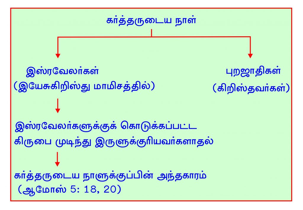 ஆமோஸ் தீர்க்கதரிசி தீர்க்கதரிசனமாய் குறிப்பிட்ட இந்த "கர்த்தருடைய நாள்" இஸ்ரவேலருக்குரியதாகும். அதுபோல புறஜாதிகளுக்கும் கர்த்தருடைய நாள் ஒன்று இருக்கின்றது.