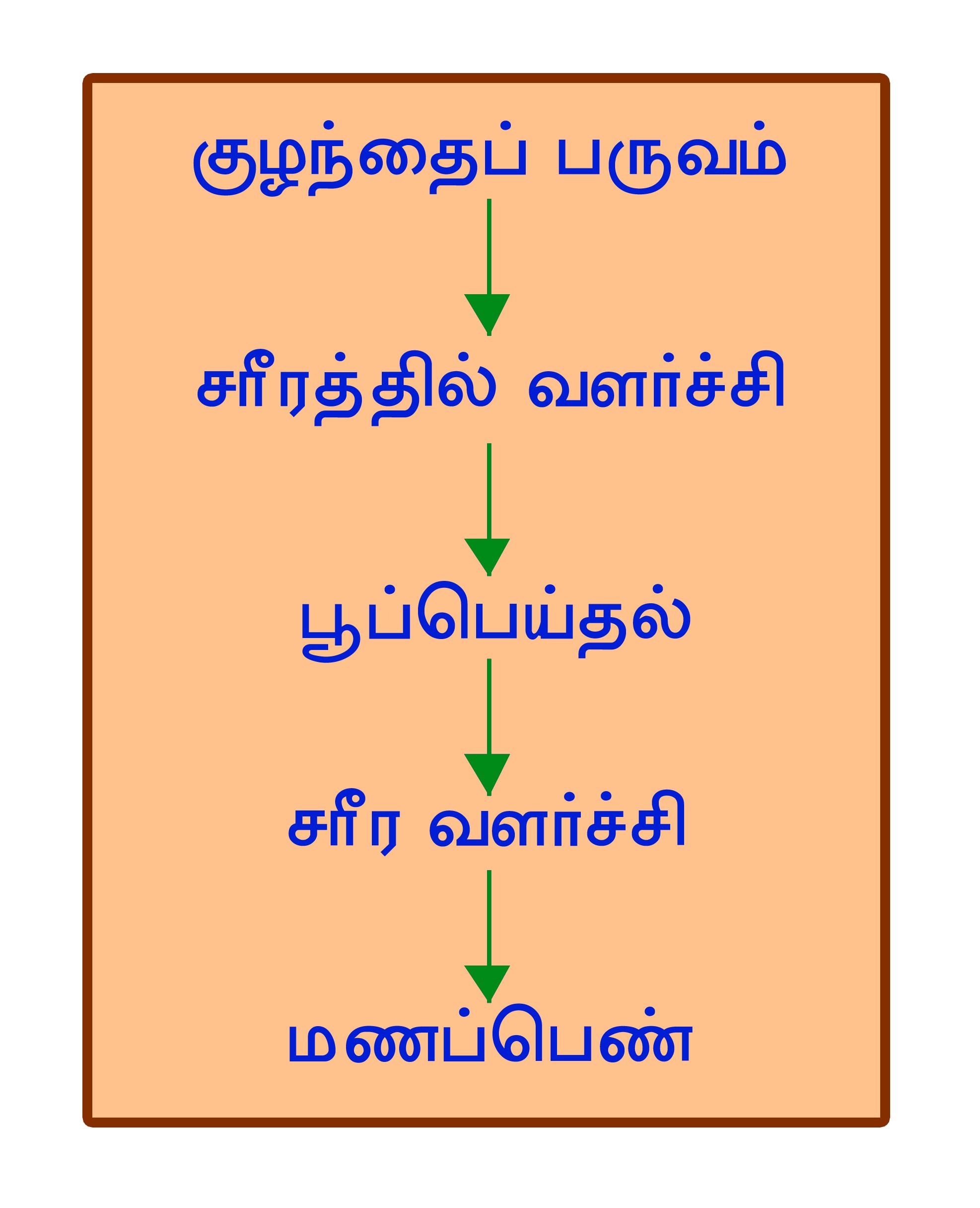 குழந்தைப் பருவத்திலிருந்து மணவாட்டியின் தன்மையினை அடைவதற்கென்று ஒரு கால அளவு நிர்ணயிக்கப்பட்டிருக்கின்றது. அப்போதுதான் அவள் திருமணம் செய்துகொள்ள சரீரத்திலும், மனதிலும் தகுதியானவளாகின்றாள். அதுபோல, இயேசுகிறிஸ்துவின் இரகசிய வருகையில் எடுத்துக்கொள்ளப்படும் மணவாட்டியும் ஒரு தகுதிக்குள்ளாக வேண்டும். அது சத்தியத்திலும், கர்த்தரை அறியக்கூடிய அறிவிலும் ஏற்படக்கூடிய வளர்ச்சியாகும்.